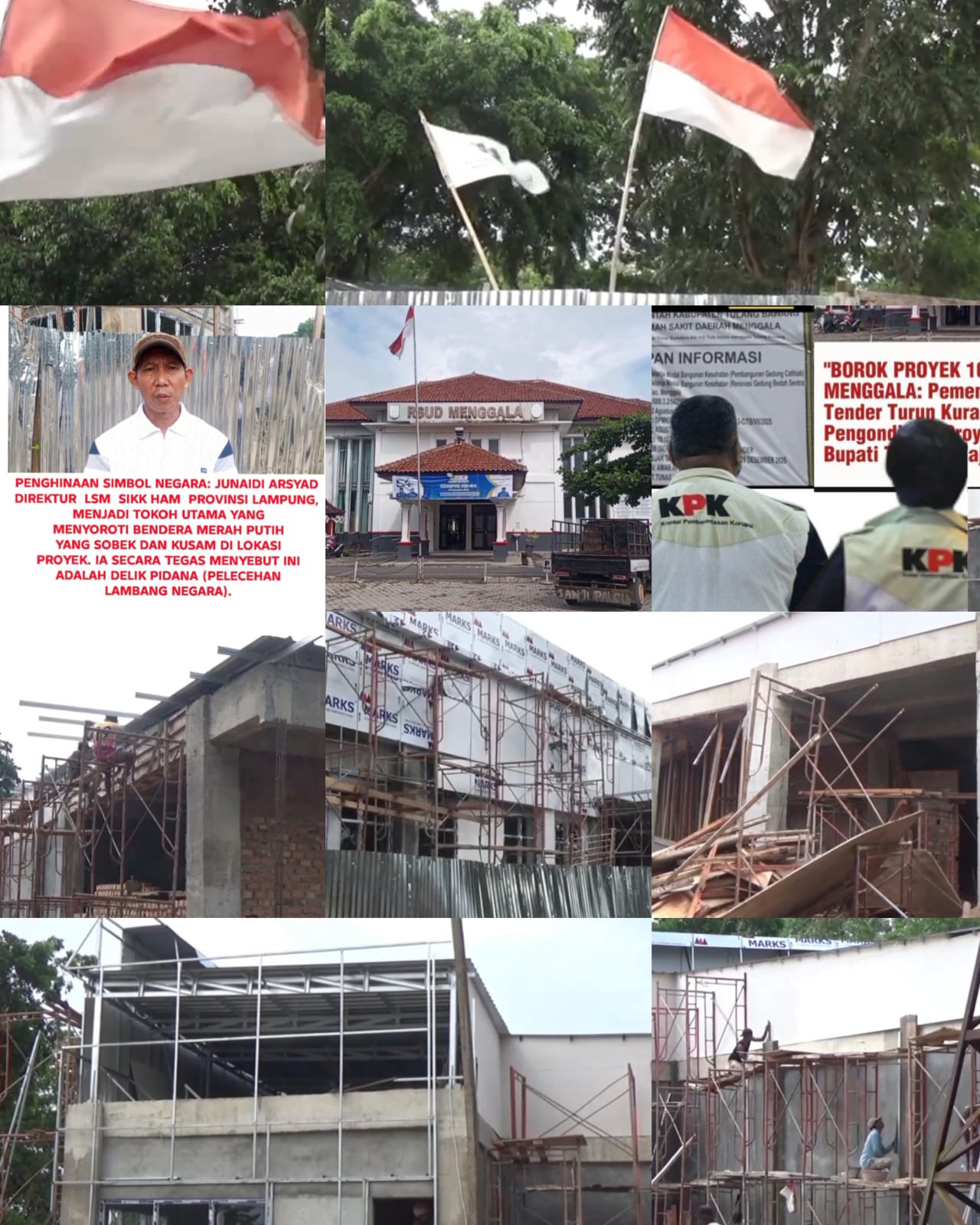 Temuan lain yang dinilai serius adalah pengibaran bendera Merah Putih dalam kondisi kusam dan sobek di area proyek. Menurut Dinaidi, hal tersebut merupakan bentuk kelalaian terhadap penghormatan lambang negara dan berpotensi memiliki konsekuensi hukum.