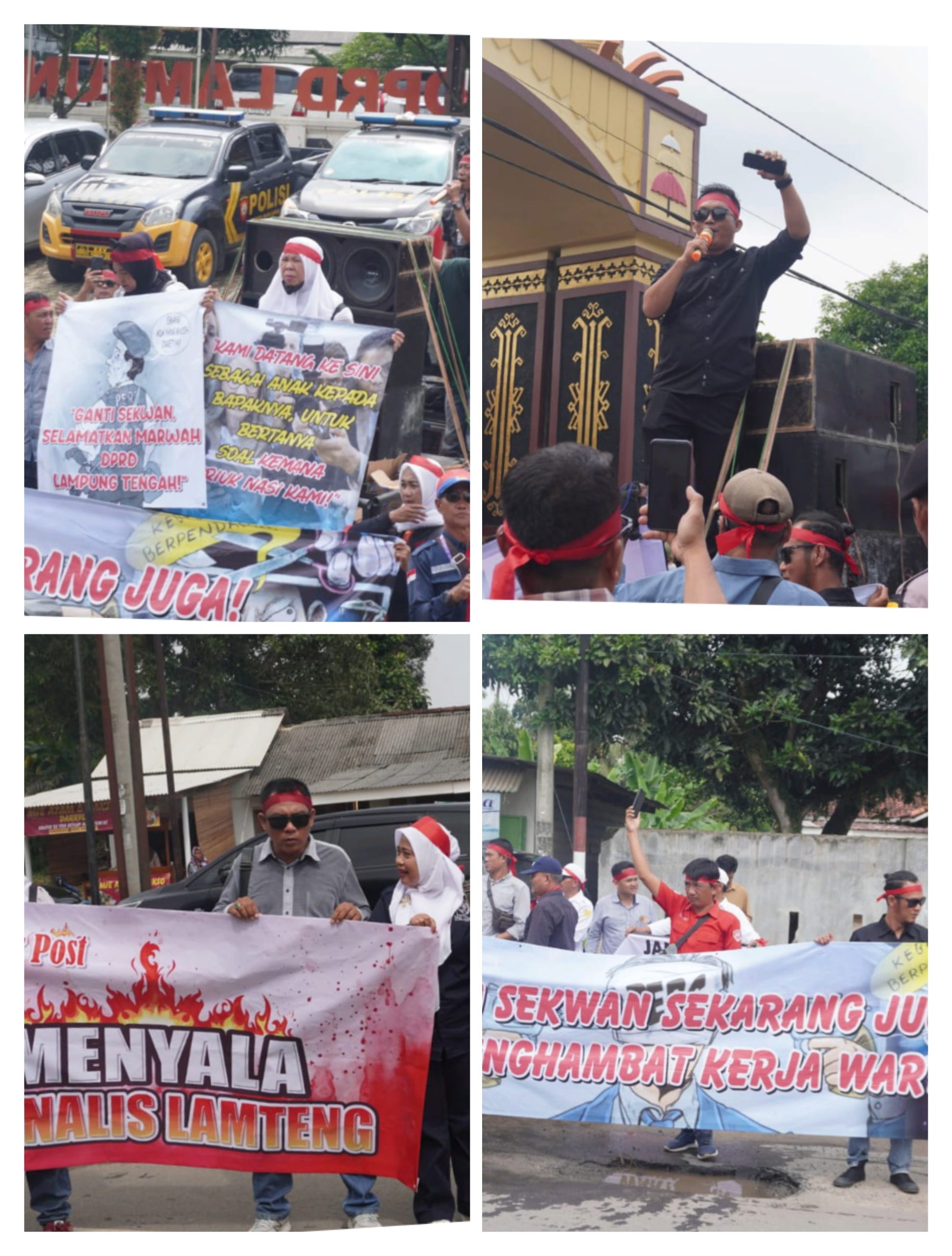 Pasalnya, tidak satu pun anggota DPRD Lampung Tengah yang hadir untuk menemui dan menerima aspirasi para jurnalis yang melakukan aksi damai.