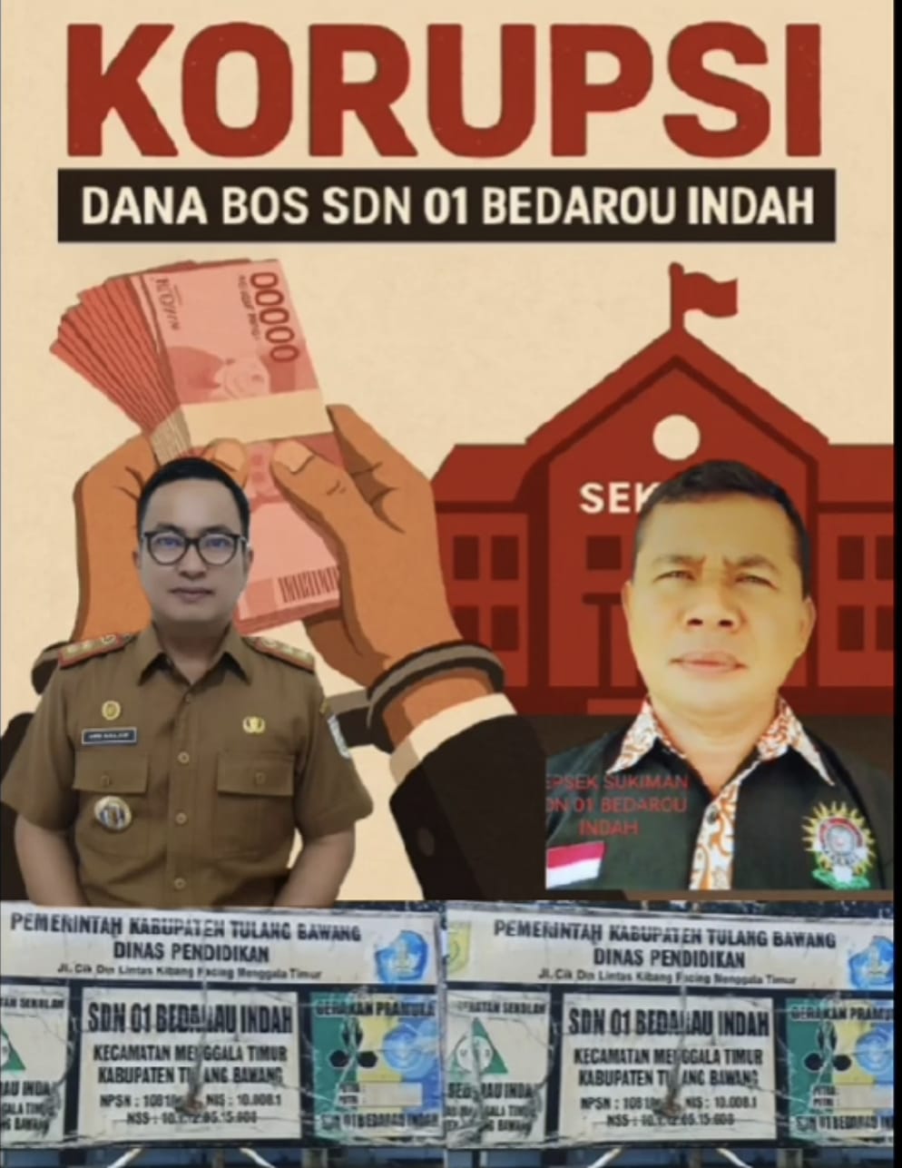 Iswandi Balaw, S.Kom., M.M., Juga Menyatakan Akan Memberi Sanksi Tegas Kepada sukiman kefsek SDN 01 Bedarou indah menggala Timur Jika Terbukti Ada Pelanggaran Namun, Janji Tinggal Janji Sampai Detik Ini, Pernyataan Mantan Kabit Dan Kadis Itu Tak Lebih Dari Angin Lalu Dinas Pendidikan Justru Dinilai Mengabaikan Persoalan Serius Yang Menyangkut Masa Depan Pendidikan Generasi Muda Di SDN 01 Bedaro Indah Ini Bukan Sekadar Soal Administrasi Tapi Sudah Menyangkut Hak Anak-Anak Untuk Mendapatkan Sarana Belajar Yang Layak Tapi Faktanya, Dinas Pendidikan Malah Terkesan Melindungi Bawahannya Yang Diduga Kuat Korupsi pengelola anggaran Dana Bos Ini Sangat Memalukan, Sambung Warga Berdasarkan Data Realisasi Anggaran Sejak 2020 Hingga 2024 Dana Yang Dikucurkan Untuk Pemeliharaan Sarana Dan Prasarana Di SDN 01 Bedaro Indah Mencapai 73.600.000 Rupiah Tak Hanya Itu, Dana Pengembangan Perpustakaan Sebesar 54.094.200 Rupiah Dan Anggaran Layanan Daya Dan Jasa Sebesar 41.325.000 Rupiah Juga Telah Dicairkan Namun, Kondisi Sekolah Masih Jauh Dari Kata Layak Berikut Rincian Anggaran Yang Diduga Diselewengkan Pemeliharaan Sar Pras 73.600.000 Rupiah Perpustakaan Dan Pojok Baca 54.094.200 Rupiah Layanan Daya Dan Jasa 41.325.000 Rupiah Meski Total Dana Mencapai 169.000.000 Rupiah Lebih Warga Menyebut Kondisi Sekolah Tak Berubah Signifikan Sejak Beberapa Tahun Terakhir Gedung Tak Terawat, Perpustakaan Tak Layak Dan Fasilitas Minim Jauh Dari Harapan Masyarakat Walaupun Dapat Dana Bos Besar SDN 01 Bedaro Indah Dari Tahun Ke Tahun Begitu Begitu Saja Tidak Ada Perubahan, Sindir Warga Dengan Dugaan Penyalahgunaan Anggaran Yang Masif Ini Masyarakat Menuntut Aparat Penegak Hukum APH Segera Turun Tangan Mereka Meminta Kejaksaan Dan Kepolisian Memeriksa Realisasi Anggaran Bos Di SDN 01 Bedaro Indah Serta Memproses Hukum Kepala Sekolah Sukiman Jika Terbukti Bersalah Bagaimana Tanggapan Kepala Sekolah Sukiman Soal Dugaan Korupsi Ini? Apakah Dinas Pendidikan Tuba Menutupi Kasus Ini? Simak Laporan Investigasi Selanjutnya Di Edisi Mendatang. (Joni Putra)