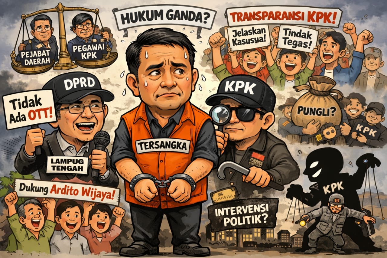 HORIZON.ID Lampung — 16/01/2026. Polemik penanganan kasus hukum yang menyeret nama mantan Bupati Lampung Tengah, Ardito Wijaya, terus menjadi perhatian nasional. Pernyataan terbaru datang dari salah satu anggota DPRD Lampung Tengah yang menegaskan, saat diwawancarai wartawan, bahwa tidak terjadi Operasi Tangkap Tangan (OTT) oleh KPK dalam perkara tersebut. Pernyataan ini memicu perdebatan publik sekaligus mempertanyakan dasar penetapan status hukum yang dilakukan aparat penegak hukum.
