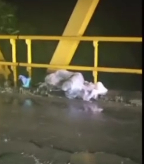 Kejadian tersebut membuat warga berbondong-bondong mendatangi lokasi karena mengira sosok yang terbungkus karung itu adalah mayat yang sengaja dibuang di atas jembatan.