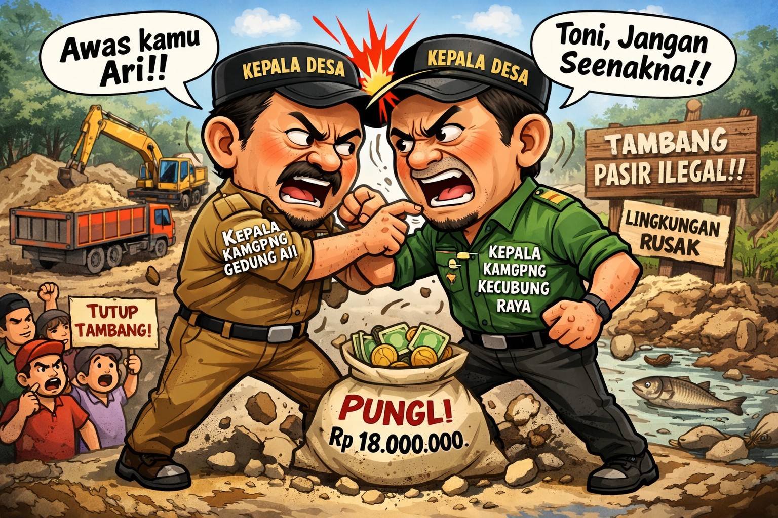 Ketegangan antar aparat kampung mencuat di wilayah Gedung Aji setelah Kepala Kampung Gedung Aji, Toni Majid, diduga terlibat perselisihan dengan Kepala Kampung Kecubung Raya KCR SP2, Ari, terkait aktivitas tambang pasir ilegal.