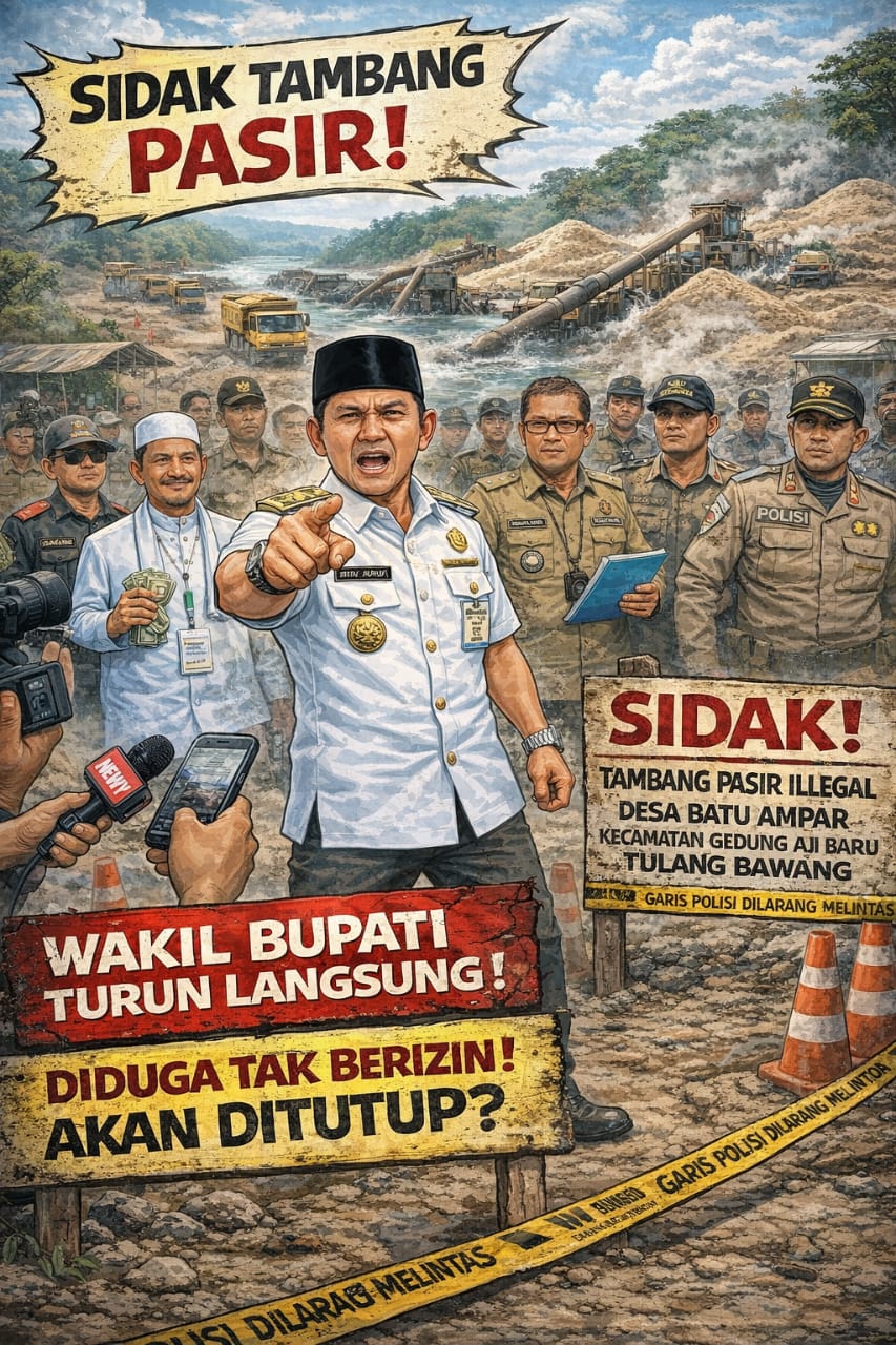 HORIZON.COM | Tulang Bawang, Lampung – Bupati Tulang Bawang bersama jajaran Organisasi Perangkat Daerah (OPD) melakukan inspeksi mendadak (sidak) ke lokasi aktivitas tambang pasir di Kampung Batu Ampar, Kecamatan Gedung Aji Baru. Sidak ini dilakukan menyusul maraknya laporan masyarakat terkait dugaan praktik pertambangan ilegal yang berlangsung di wilayah tersebut.