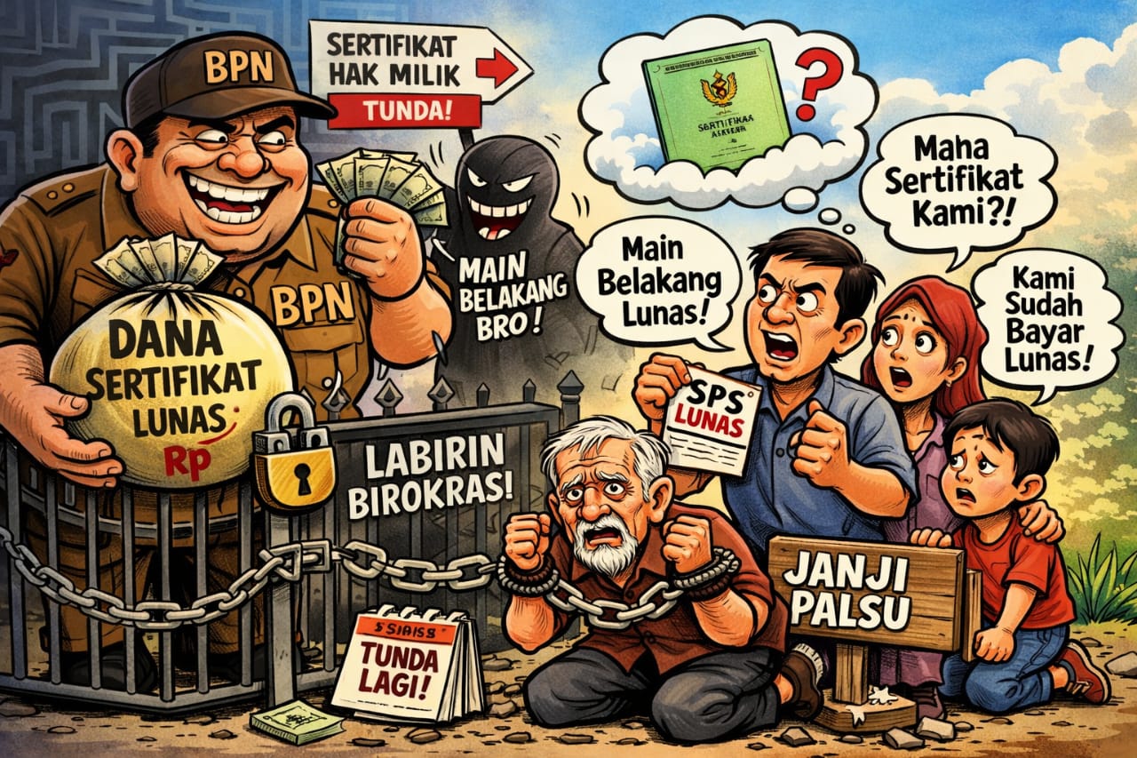 Kondisi ini semakin ironis. Warga yang telah memenuhi kewajiban justru terjebak dalam ketidakpastian hukum. Sertifikat yang seharusnya menjadi bukti sah kepemilikan tanah kini seolah tertahan dalam sistem birokrasi yang tak transparan.