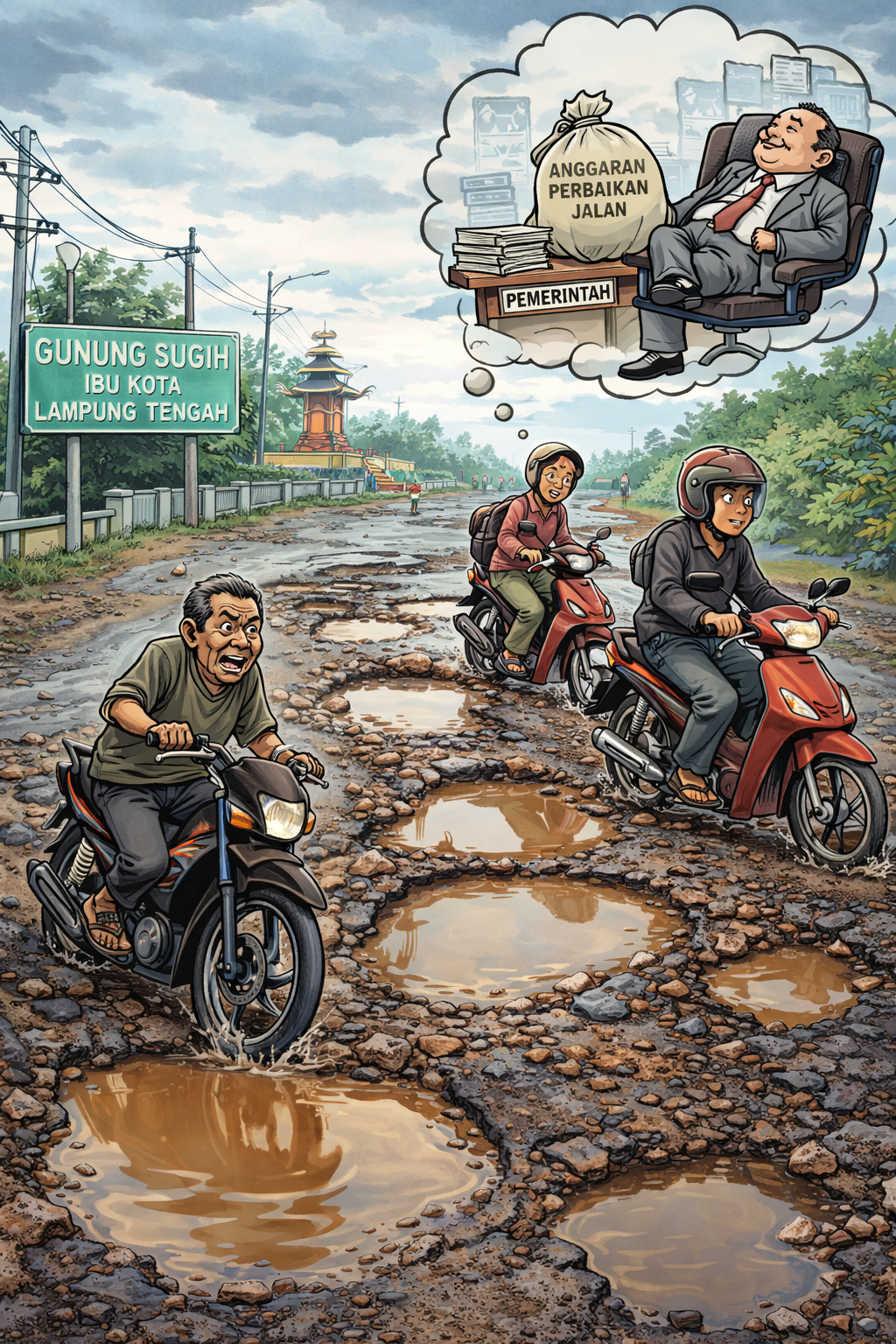 Warga juga menegaskan agar pemerintah tidak menunda perbaikan hingga menimbulkan korban jiwa. Sebagai pusat pemerintahan Kabupaten Lampung Tengah, Gunung Sugih dinilai sudah seharusnya mendapatkan prioritas dalam pembangunan infrastruktur jalan yang layak dan aman bagi masyarakat. (Red)